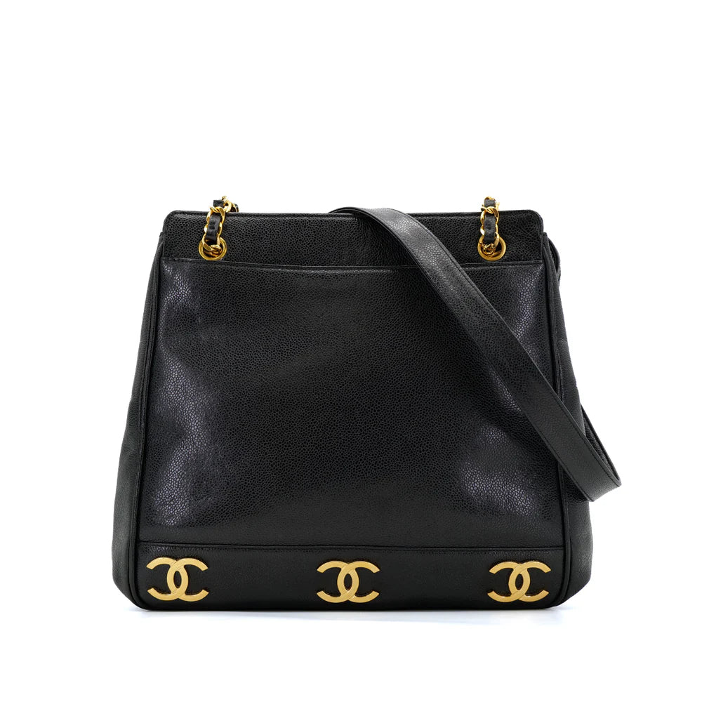 Vintage Medium Triple Coco Tote - Black Caviar
