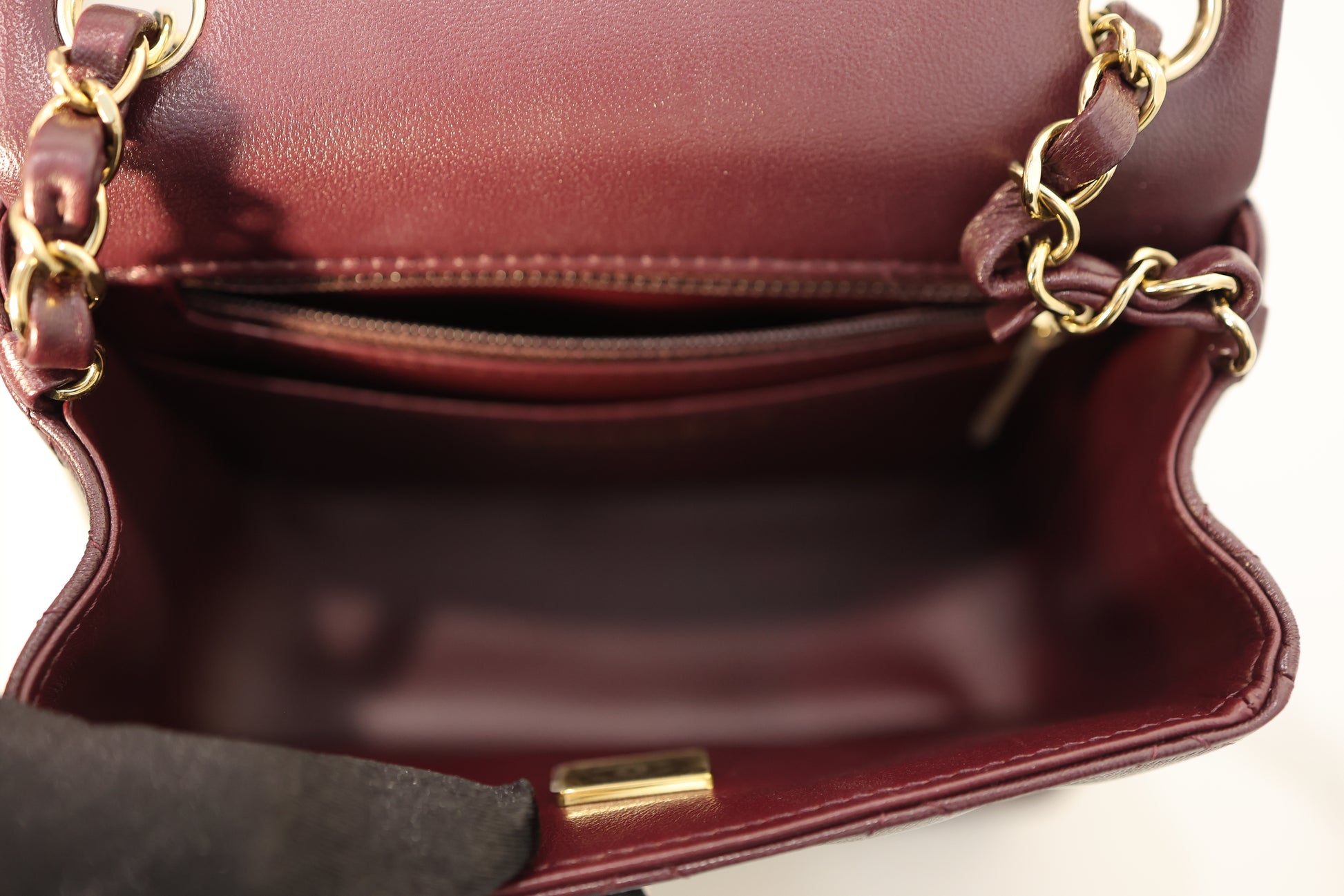 This is a Chanel burgundy classic square flap in burgundy lambskin leather with gold toned hardware. It is microchipped and comes with original box and dust bag.